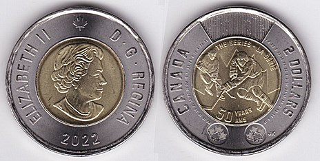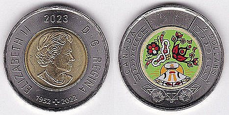 ![]() km3195.1 2 Dollars (2022) 50 yrs. of the Summit Series (colorized) | ![]() km3350a 2 Dollars (2023) National Indigenous Peoples Day | ![]() km84 5 Dollars (1973) Sailboat Kingston | ||