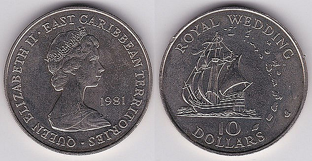 ![]() km7 50 Cents (1955,1965) | ![]() km9 10 Dollars (1981) Royal Wedding |
