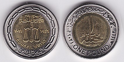 ![]() km940a 1 Pound (2007--) brass/nickel plated steel | ![]() km1001 1 Pound (2015) Suez Canal | ![]() km1039 1 Pound (2019) Alamain New City | ||