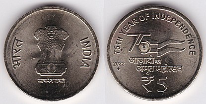 ![]() new 5 Rupees (2016) Krishnaraja Wodeyar IV | ![]() new 5 Rupees (2019--) agriculture grains | ![]() km540 5 Rupees (2021--) 75 yrs of Independence | ||