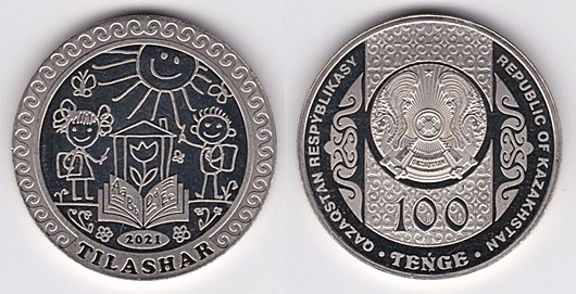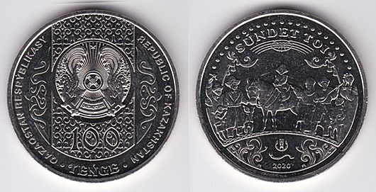 ![]() km356 100 Tenge (2017) A. Galimbayeva | ![]() km499 100 Tenge (2020) Belka Strelka | ![]() km501 100 Tenge (2020) Sundet toi; Circumcision | ||