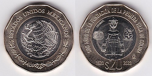 ![]() unlisted 20 Pesos (2023) First Villa of Colima | ![]() km479.1 25 Pesos (1968) XIX Olympics in Mexico | ![]() km480 25 Pesos (1972) Benito Juarez | ||