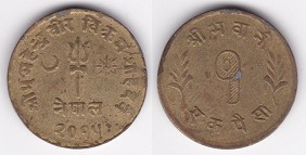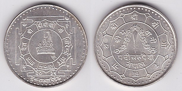 ![]() km829.1 1 Rupee (1973) Birendra Coronation | ![]() km831 1 Rupee (1975) Intl Womens Year | ![]() km1061 1 Rupee (1988-1992) | ||