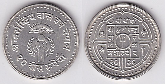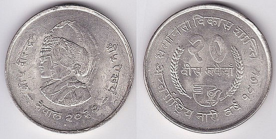 ![]() km1118 10 Rupees (1997) Visit Nepal | ![]() km836 20 Rupees (1975) International Womens Year | ![]() km837 20 Rupees (1979) yr 2036 Year of the Child | ||