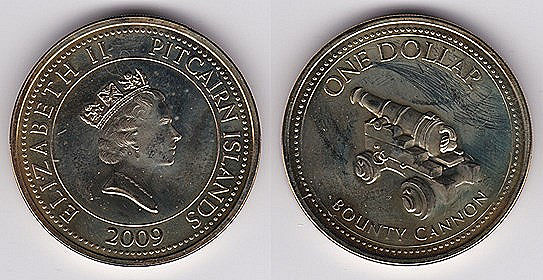![]() km14 1 Dollar (2006) Queen Elizabeth II 80th Birthday | ![]() km58 1 Dollar (2009,2010) Bounty Cannon | ![]() km59 2 Dollars (2009) Bounty Helm | ||
