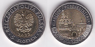 ![]() y1126 5 Zlotys (2022) Monastery on Swiety Krzyz Mount | ![]() y1182 5 Zlotys (2024) Benedictine Abbey in Tyniec | ![]() y22 10 Zlotych (1932-1933) | ||