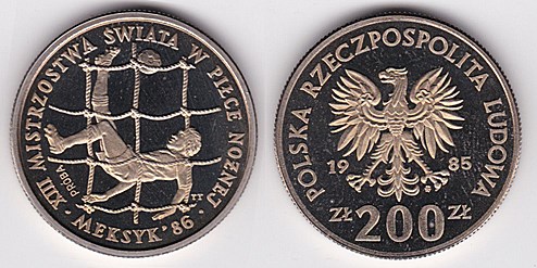 ![]() y115 200 Zlotych (1980) King Boleslaw Chrobry | ![]() y132 200 Zlotych (1982) Boleslaw Krzywousty | ![]() Pr475 200 Zlotych (1982) soccer player | ||