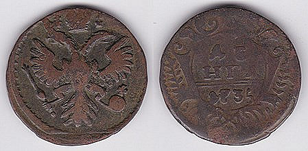 ![]() c116 1/2 Kopek (1810-1828)=1 Denga | ![]() c143.4 1/2 Kopek (1839-1847) | ![]() km188 1 Denga (1730-1754) | ||