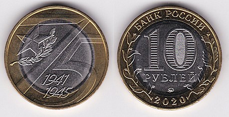 ![]() y1649 10 Roubles (2015) WW-II Beat Swords into Plowshares | ![]() y1650 10 Roubles (2015) WW-II Monument to a Soldier | ![]() y1651 10 Roubles (2015) WW-II Official Emblem | ||