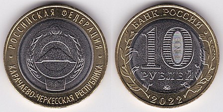 ![]() y997 10 Roubles (2009) Kirov Region | ![]() y998 10 Roubles (2009-2015) brass-plated steel | ![]() y1274 10 Roubles (2010) Russian Census | ||