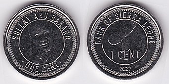 ![]() km32 1 Cent (1980) | ![]() km503 1 Cent (2022) Sullay Abu Bakarr | ![]() km18 5 Cents (1964) Kapok Tree | ||