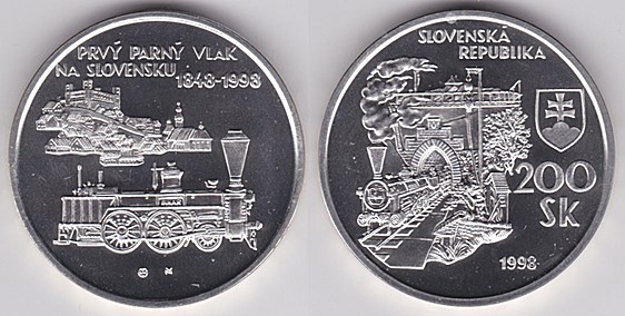 ![]() km42 200 Korun (1998) 150 yrs Railway in Slovakia | ![]() km43 200 Korun (1998) 150 yrs Slovak Revolt to 1848 | ![]() km44 200 Korun (1998) Spis Castle | ||