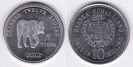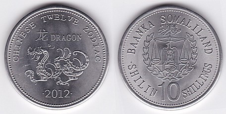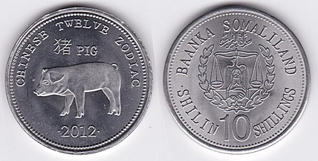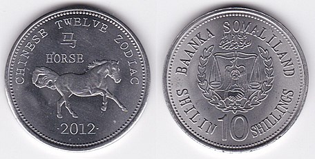![]() km59 10 Shillings (2012) Dog | ![]() km60 10 Shillings (2012) Dragon | ![]() km61 10 Shillings (2012) Horse | ||