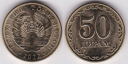 ![]() km26 50 Diram (2011--) | ![]() km55 50 Diram (2019-2023) | ![]() km7 1 Somoni (2001) | ||