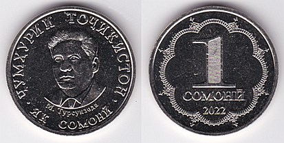 ![]() km27 1 Somoni (2011) Stainless Steel clad Iron | ![]() new 1 Somoni (2018) M. Tursunzoda | ![]() km56 1 Somoni (2019-2023) M. Tursunzoda | ||