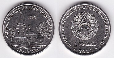 ![]() km299 1 Rouble (2018) Eurasian Otter | ![]() km304 1 Rouble (2018) Church of St. Andrew | ![]() km305 1 Rouble (2018) Church in Tiraspol | ||