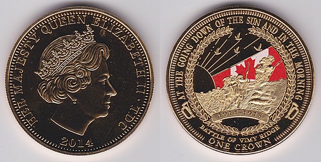 ![]() new 1 Crown (2014) Pope John Paul II | ![]() new 1 Crown (2014) Cardinal of San Cesareo | ![]() unlisted 1 Crown (2014) Battle of Vimy Ridge | ||