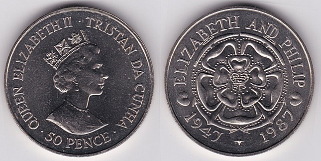 ![]() km33 25 Pence (2008) Bottlenose Dolphins | ![]() km7 50 Pence (1987) 40th Wedding Anniversary | ![]() km7b 50 Pence (1987) Wedding Anniversary (copper-nickel) | ||