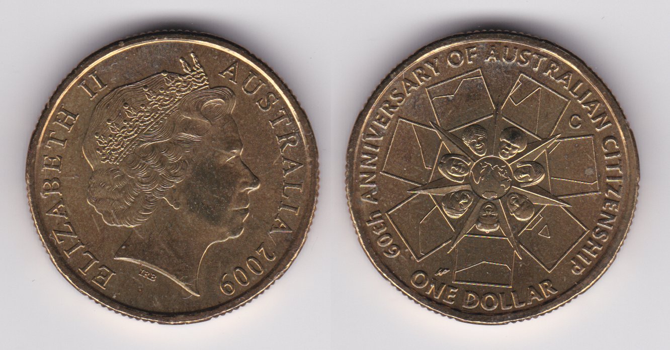 1 Dollar (2009) 60 yrs. Australian Citizenship