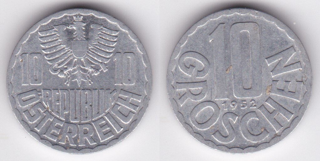 ![]() | 114232 | Austria | 1952 | km2878 | 10 Groschen (1951-2001) | $0.25 | A |