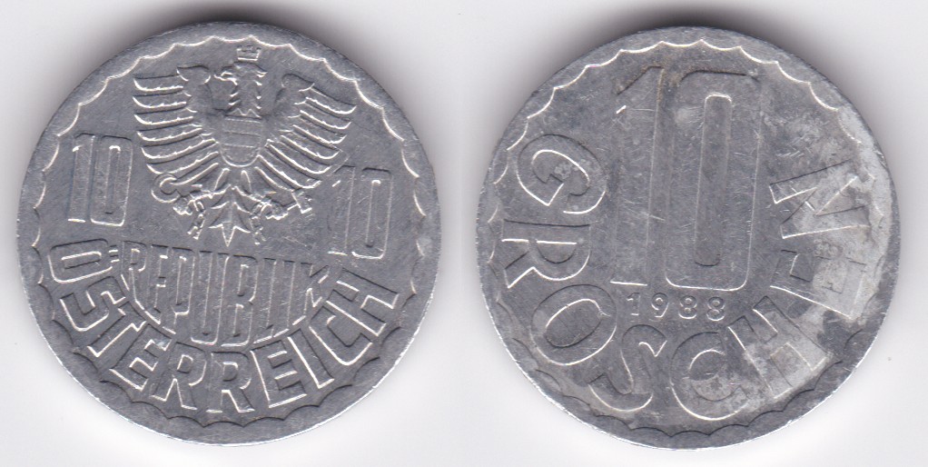 ![]() | 114233 | Austria | 1988 | km2878 | 10 Groschen (1951-2001) | $0.25 | A |