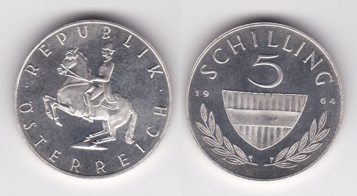 ![]() | 97921 | Austria | 1964 | km2889 | 5 Schilling (1960-1968) (2 available) | $7.25 | A |