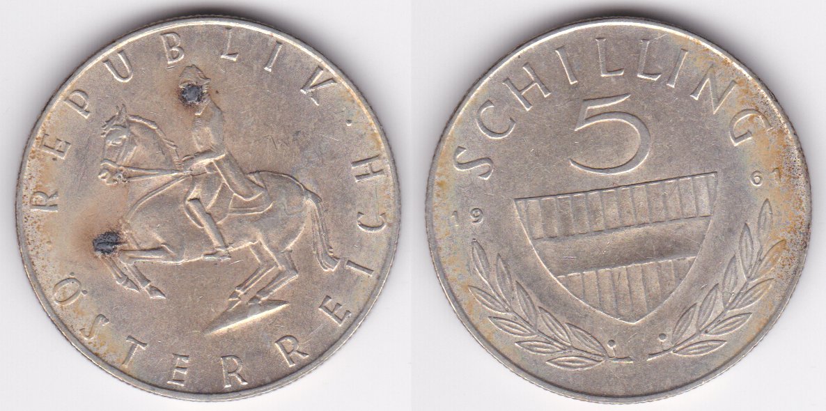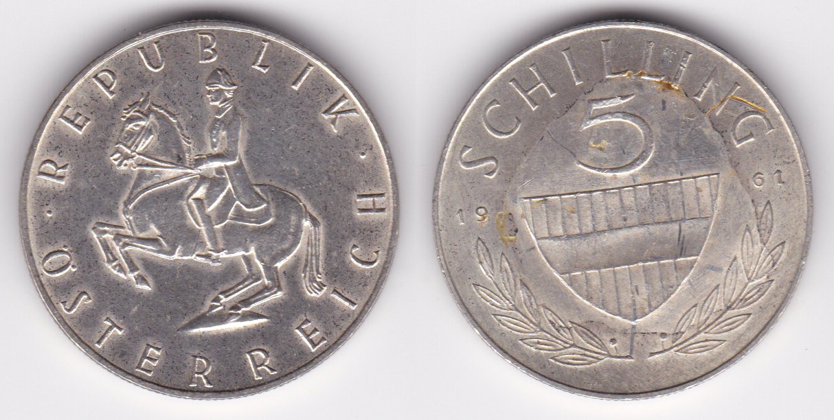 ![]() | 100886 | Austria | 1961 | km2889 | 5 Schilling (1960-1968) | $8.75 | A |