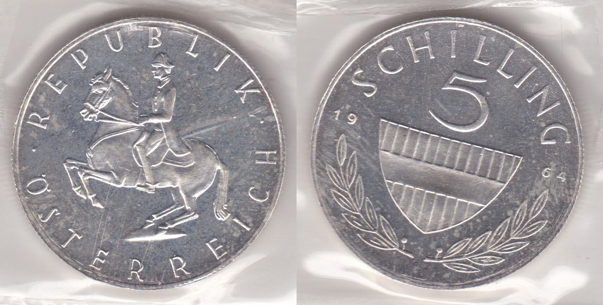 ![]() | 108146 | Austria | 1964 mintset | km2889 | 5 Schilling (1960-1968) | $13.50 | A |