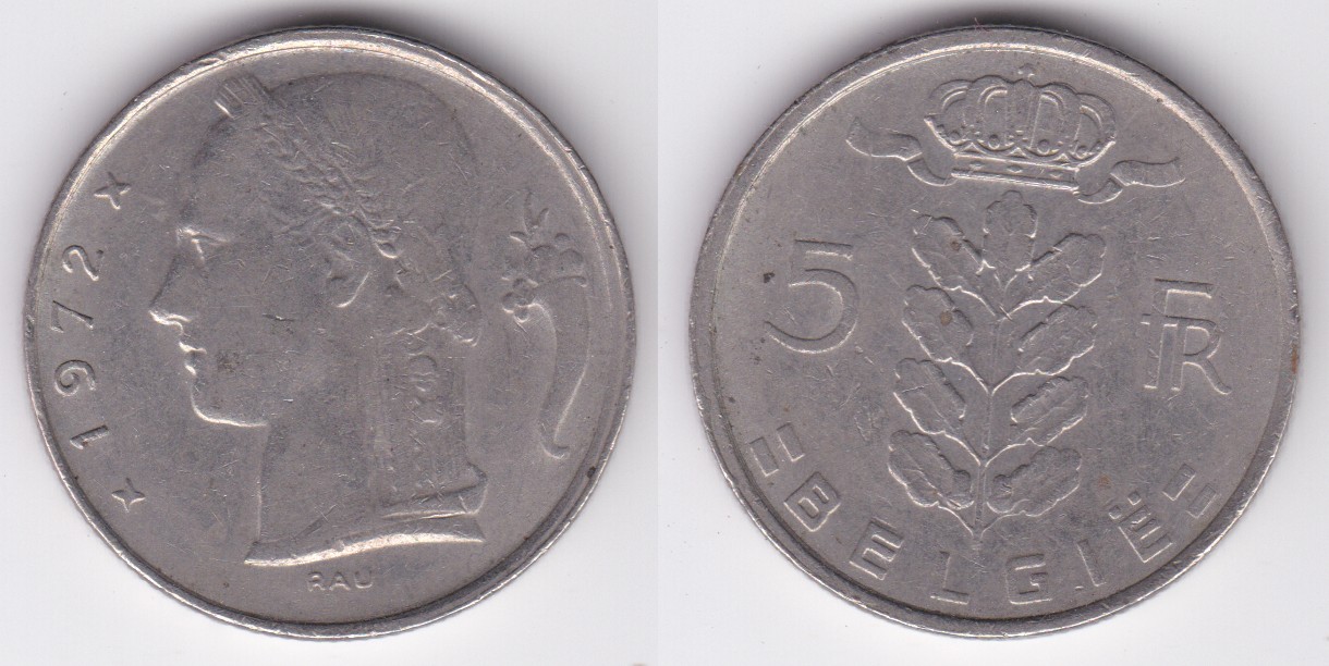 ![]() | 109731 | Belgium | 1972 | km135.1 | 5 Francs (1948-1981) Belgie | $0.25 | A |