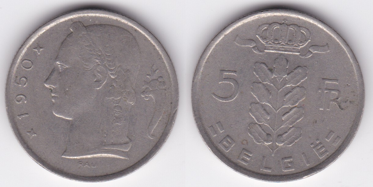 ![]() | 109734 | Belgium | 1950 | km135.1 | 5 Francs (1948-1981) Belgie | $0.25 | A |