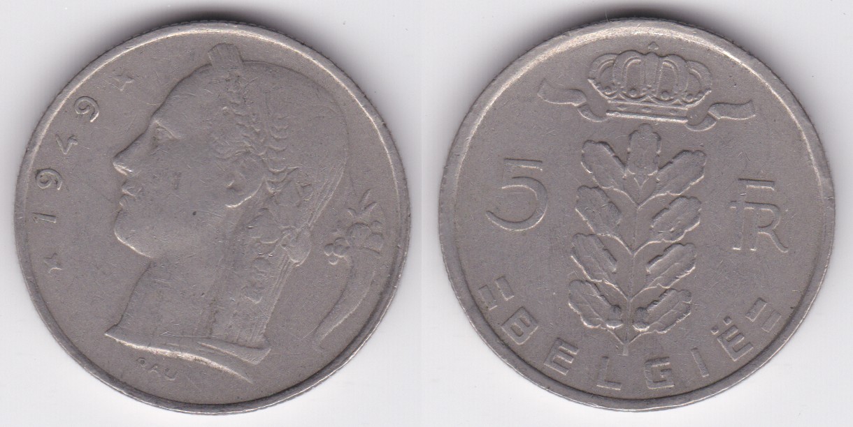 ![]() | 109735 | Belgium | 1949 | km135.1 | 5 Francs (1948-1981) Belgie | $0.25 | A |
