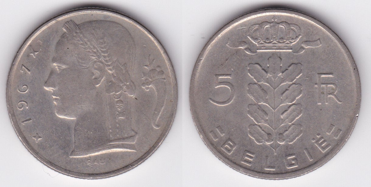 ![]() | 110255 | Belgium | 1967 | km135.1 | 5 Francs (1948-1981) Belgie | $0.25 | A |