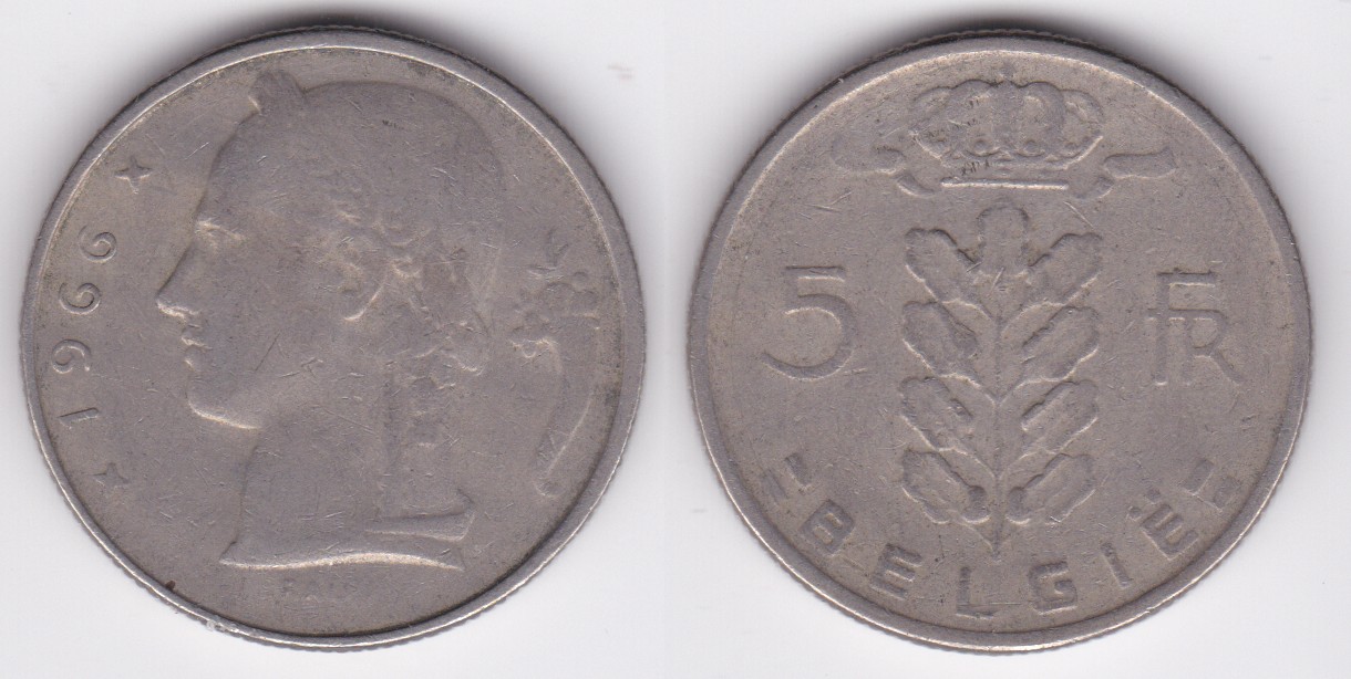 ![]() | 110256 | Belgium | 1966 | km135.1 | 5 Francs (1948-1981) Belgie | $0.25 | A |