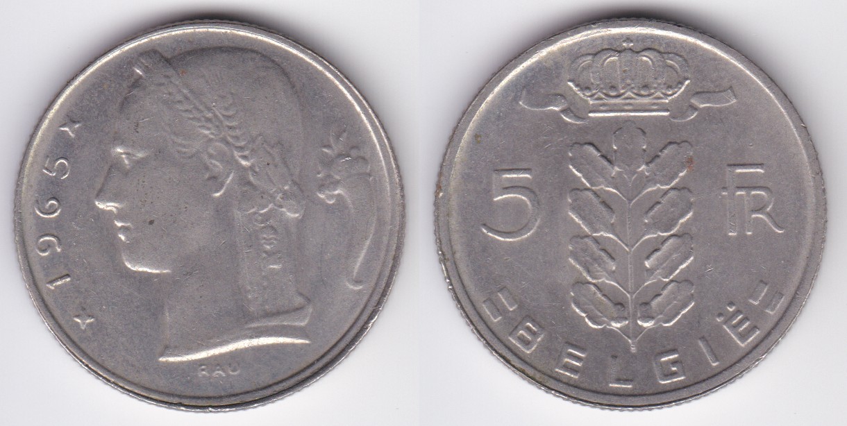 ![]() | 110257 | Belgium | 1965 | km135.1 | 5 Francs (1948-1981) Belgie | $0.25 | A |