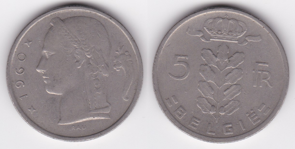 ![]() | 112107 | Belgium | 1960 | km135.1 | 5 Francs (1948-1981) Belgie | $0.50 | A |