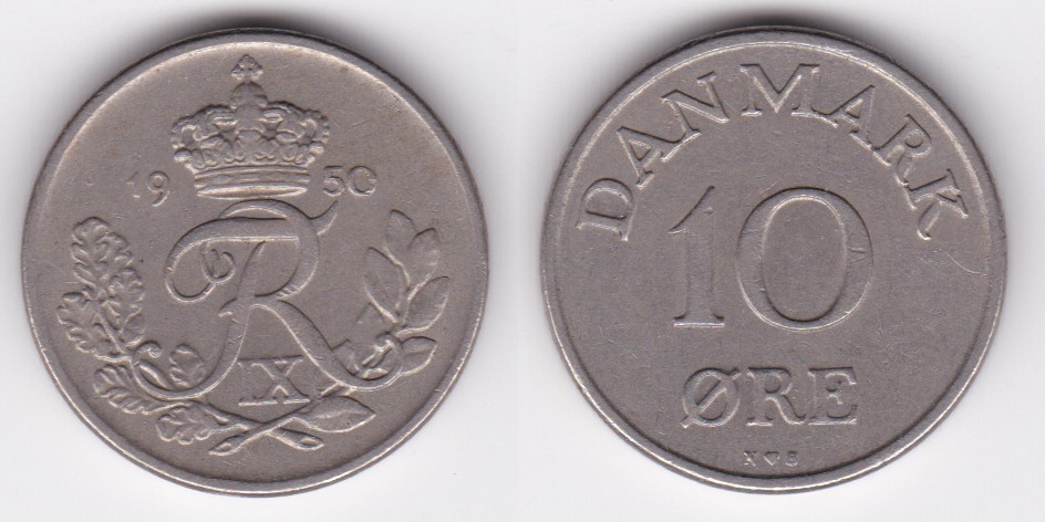 ![]() | 114221 | Denmark | 1950 | km841.1 | 10 Ore (1948-1955) initials NB | $0.25 | A |