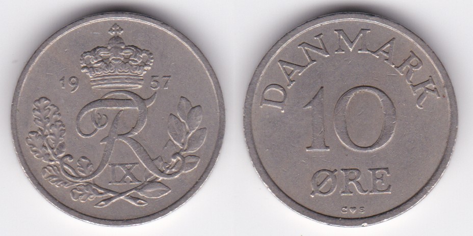 ![]() | 102326 | Denmark | 1958 | km841.2 | 10 Ore (1956-1960) (6 available) | $0.25 | A |