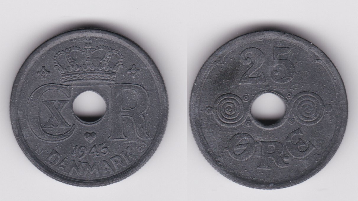 ![]() | 98287 | Denmark | 1945 | km823.2a | 25 Ore (1941-1945) zinc | $6.00 | A |