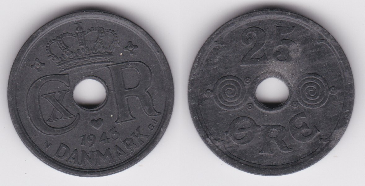 ![]() | 104201 | Denmark | 1943 | km823.2a | 25 Ore (1941-1945) zinc | $14.75 | A |