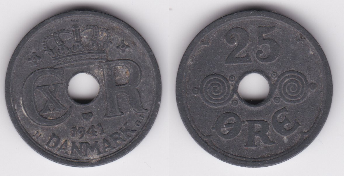 ![]() | 104202 | Denmark | 1941 | km823.2a | 25 Ore (1941-1945) zinc | $9.00 | A |