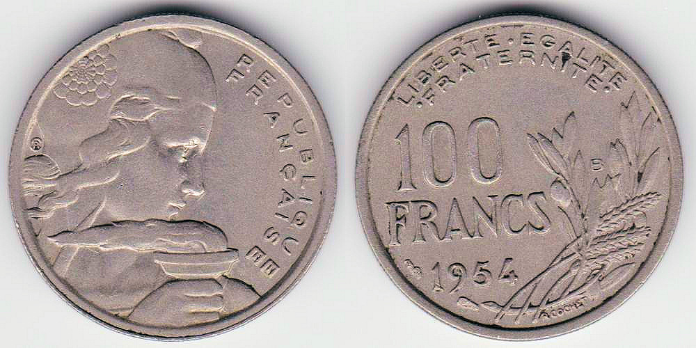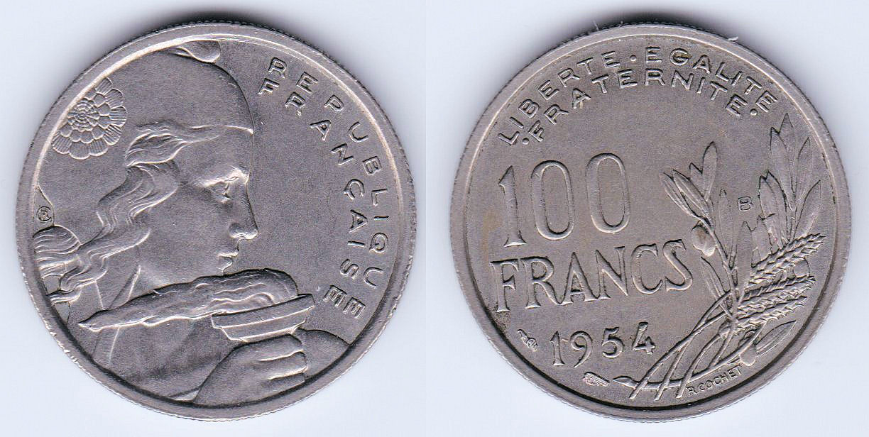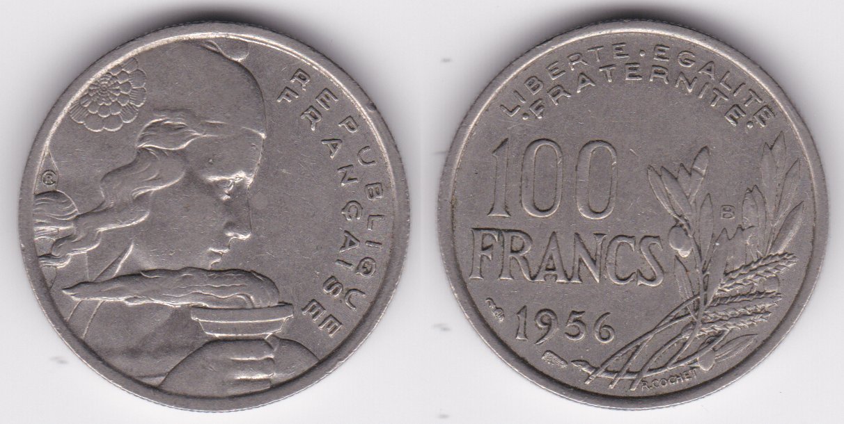 ![]() | 104573 | France | 1956-B | km919.2 | 100 Francs (1954-1958) mintmark B | $2.25 | A |