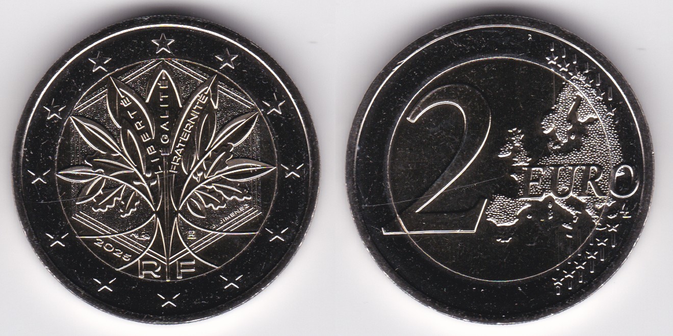 2 Euro (2022--) leaves and fruit of the oak and olive trees
