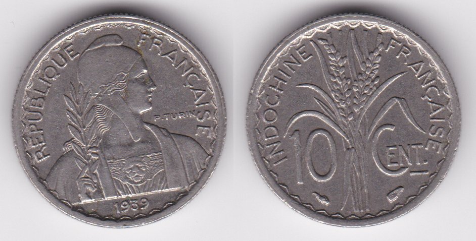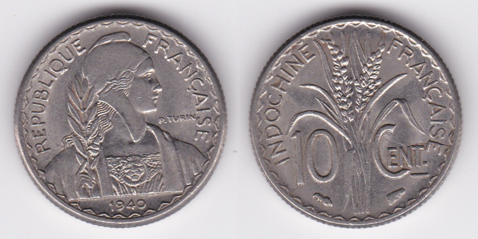 ![]() | 102385 | French Indo-China | 1940 | km21.1 | 10 Cents (1939-1940) nickel (magnetic) | $0.50 | A |
