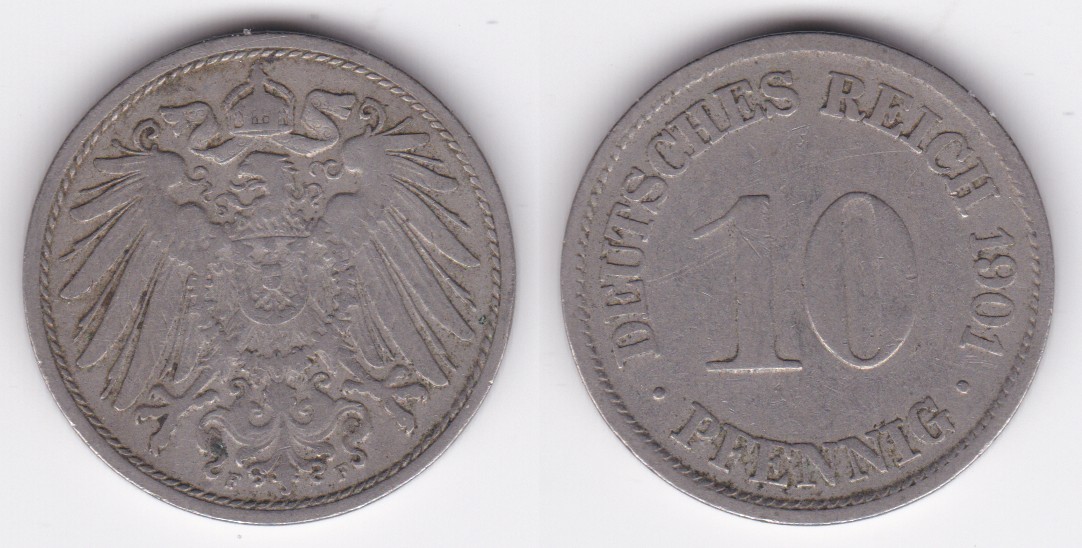 | 112482 | German Empire | 1907-F | km12 | 10 Pfennig (1890-1916) copper-nickel | $1.00 | A |