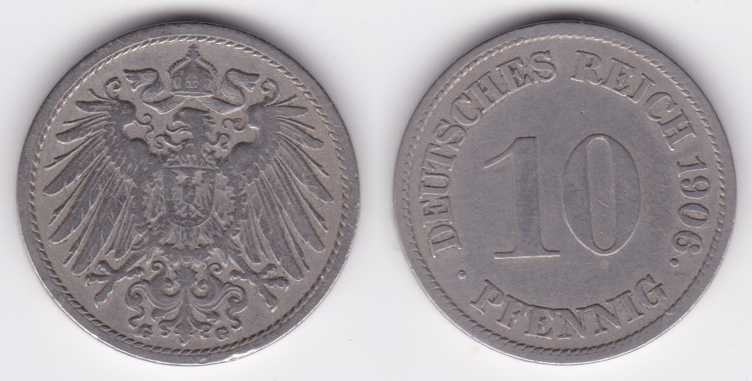| 110595 | German Empire | 1906-G | km12 | 10 Pfennig (1890-1916) copper-nickel | $4.00 | A |