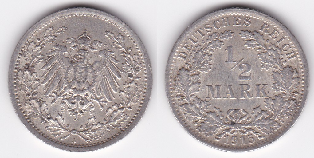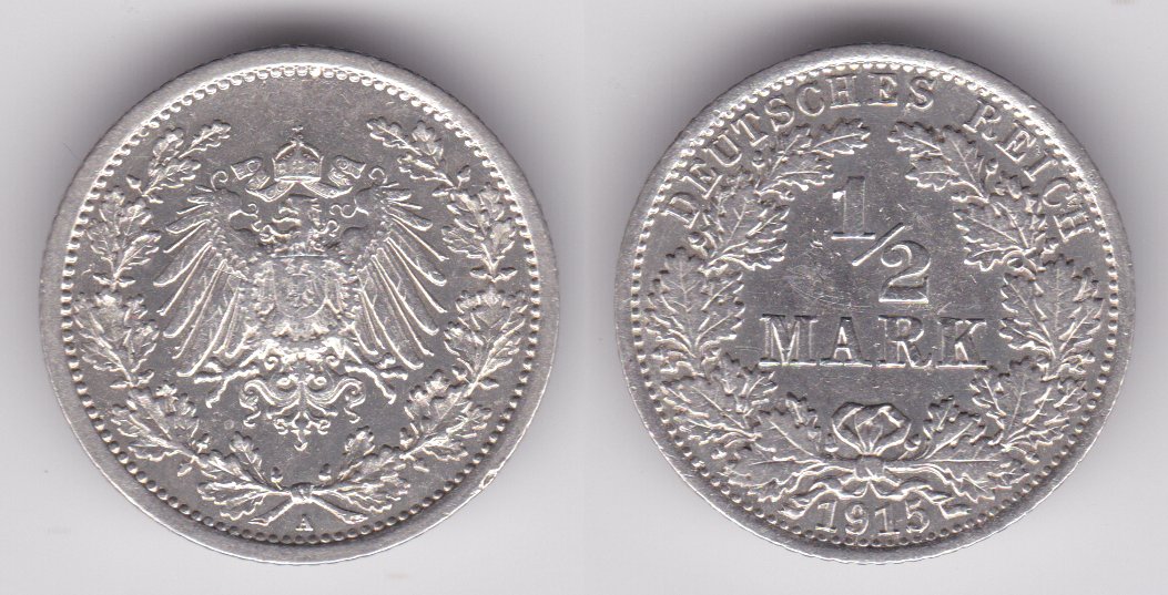 ![]() | 101160 | German Empire | 1915-A | km17 | 1/2 Mark (1905-1919) | $7.50 | A |