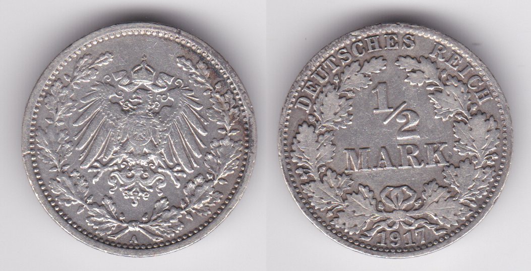 ![]() | 101161 | German Empire | 1917-A | km17 | 1/2 Mark (1905-1919) | $7.25 | A |