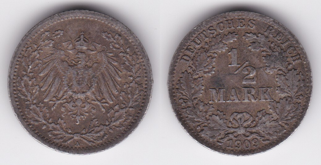 ![]() | 101530 | German Empire | 1909-A | km17 | 1/2 Mark (1905-1919) | $6.75 | A |