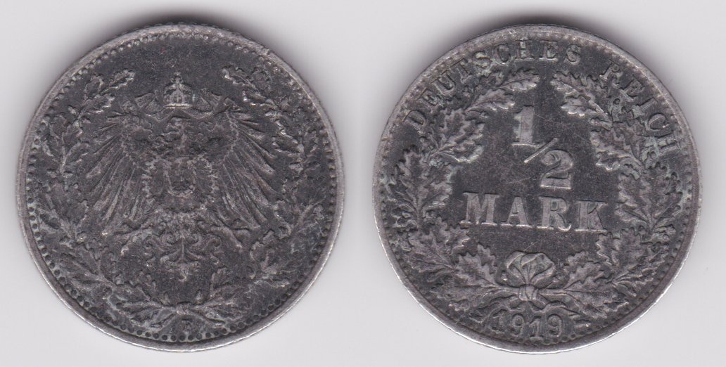 ![]() | 112009 | German Empire | 1918-F | km17 | 1/2 Mark (1905-1919) | $14.00 | A |