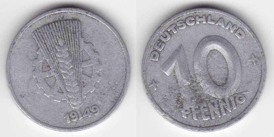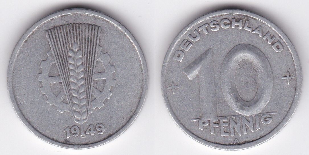 ![]() | 112799 | German DDR - East Germany | 1949 | km3 | 10 Pfennig (1948-1950) | $0.50 | A |
